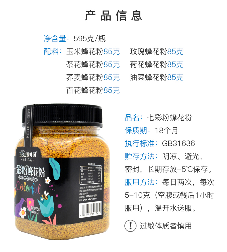 五臺(tái)山蜜蜂園七彩粉蜂花粉595g
