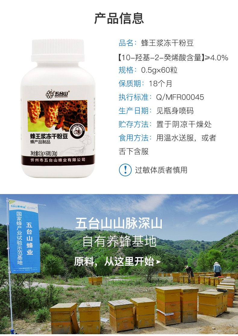 五臺山蜂王漿凍干粉豆60粒